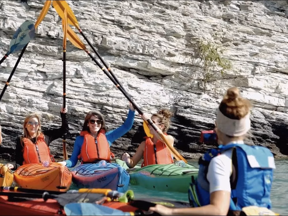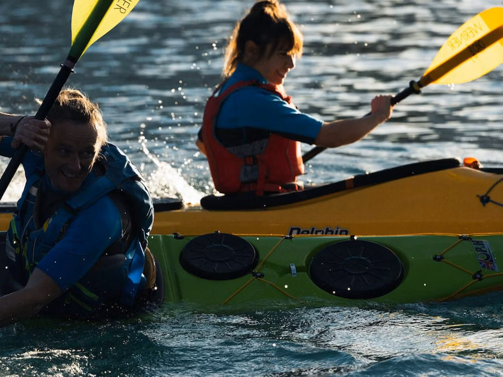 استمتع بتجربة التجديف بقوارب الكاياك في مياه بحيرة برينز الفيروزية – واستكشف الحياة البرية والمياه الصافية. اختر التجديف بالكاياك منفردًا أو ترادفيًا للاستمتاع بمغامرة آمنة وشخصية. سترات النجاة المقدمة تضمن رحلة ممتعة. اكتشف عجائب بحيرة برينز الطبيعية.
